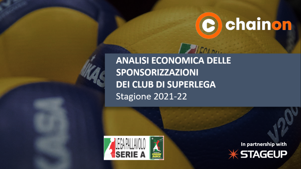Questo il dato che emerge dall’approfondimento “Analisi economica delle sponsorizzazioni dei Club di Superlega – Stagione 2021/2022” di ChainOn, il digital marketplace delle sponsorizzazioni, un report dettagliato, realizzato in collaborazione con StageUp. Nel dettaglio: il valore delle sponsorizzazioni di maglia dei Club di Superlega è ripartito in € 18 milioni (97%) derivanti dalle partnership commerciali (main sponsor e altri sponsor di […]